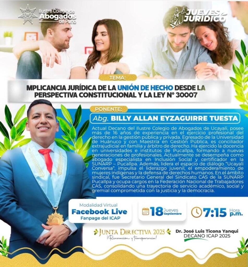 Jueves jurídico: Implicancia Jurídica de la Unión de Hecho Desde la Perspectiva Constitucional y la Ley Nº 30007