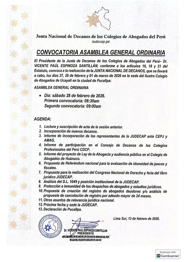 La Junta Nacional de Decanos de los Colegios de Abogados del Perú, a través de su presidente Dr. Vicente Paul Espinoza Santillan incorporó al Dr. Oscar Matta Núñez decano del Ilustre Colegio de Abogados de Ica, asimismo la Judecap eligió a los representantes ante el Consejo Ejecutivo del Poder Judicial y Consejo Directivo de la […]